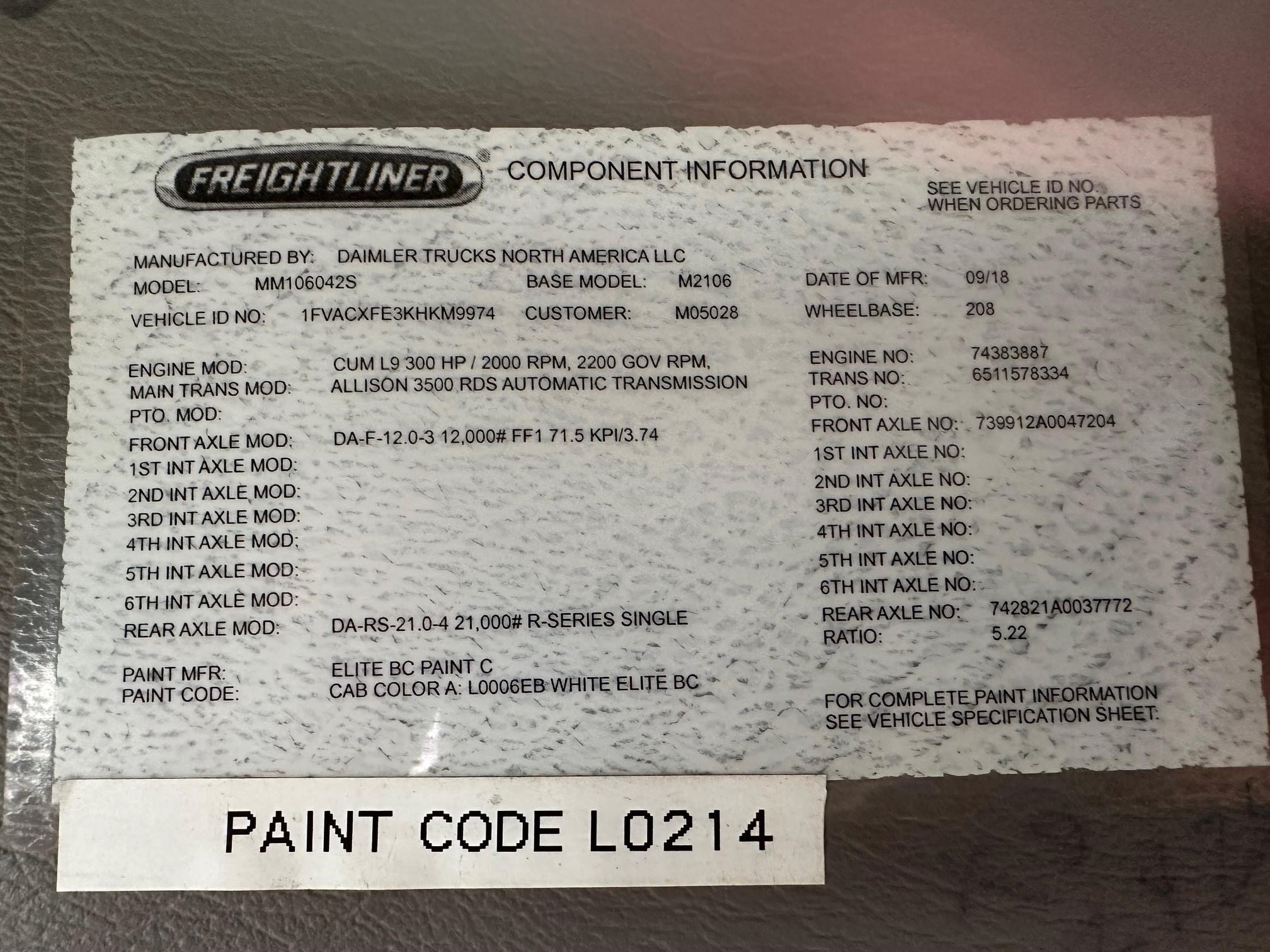 | Manufacturer: FREIGHTLINER | Mileage: 175946 |